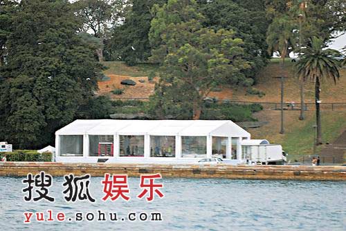 婚禮現場位于悉尼大橋旁的“皇家植物園”,場地是私人包場,閑雜人等是不得內進。記者從遠處所見場地已布置妥當,外圍搭建了白色帳篷,以防傳媒偷拍。