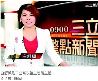 - 【侨报讯】苏贞昌幕僚李厚庆近日与三立主播白舒桦惊传婚外情,李厚庆的太太还会同警方前往抓奸,引发轩然大波。然而,这并不是绿营与媒体界第一次传出花边新闻,由于近水楼台,过去也有多位蓝绿政要在媒体界觅得人生春天。