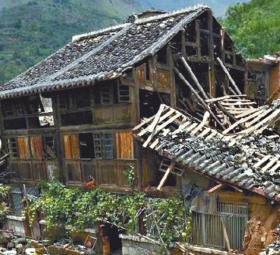 震央土墙楼大都被夷为平地,甚至新楼房也被震出大裂缝无法居住。不过,同在震央的龙头山镇老街,却有一座修建于1949年的龙头山供销社三层木楼巍然屹立(图),只有一点损毁,当时睡在底楼的两个小孩因此而躲过一劫。
