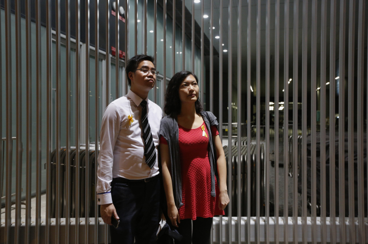 9月26日晚上10点30分,在结束了一个星期的罢课之后,连日集会的学生、市民正待散去,学民思潮召集人、17岁的黄之锋在短暂宣告后,突然带头翻越围栏,冲入“公民广场”──这一块政府总部门前空地,是规划的公众集会用地,曾在2012年反国教运动中成为最主要的抗议地标,并因此得名“公民广场”,而在2014年7月17日,接近人大表决香港普选方案的日期,港府突然封闭这块用地,直至8月底再度开放时,四周已经满满修建起两米高的钢铁围栏,实质性破坏了这块一千平米空地的集会效应。那一天晚上,在“重夺公民广场”的口号带领下,学民思潮的黄之锋、学联的秘书长周永康、副秘书长岑敖晖等100多名学生,不顾一切冲了进去。黄之锋很快被警察按倒在地,用胡椒喷雾制服,并直接拘捕,其他百余名学生则由赶来增援的警察团团围住,困在“公民广场”之中。正在散去的人群汹涌起来,聚集在公民广场的铁栏杆外不肯离去,并有更多人赶来声援,人们整晚高喊口号:“释放学生!”“学生无罪!”“警察可耻!”