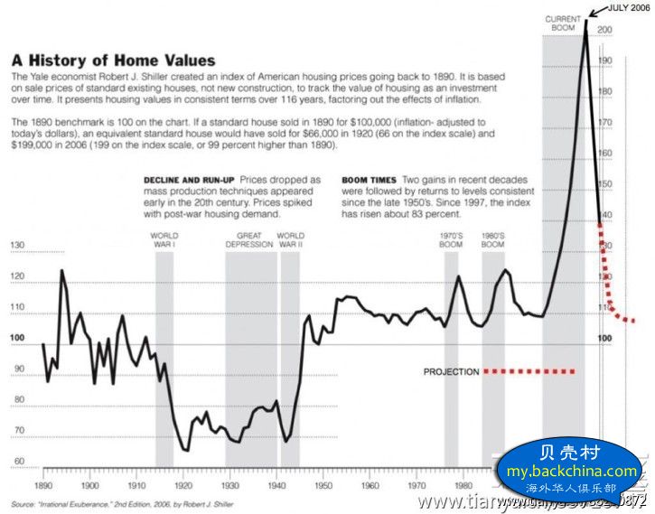 如题,美国过去116年的房价走势图,原来房价并不是傻多鼓吹的那样是永远升值的,即使升值,也小的忽略不计,甚至相当的时间内房子是不断贬值的。
