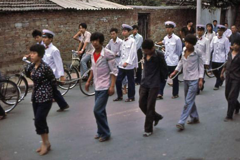当20世纪80年代初知青一代已回城时,为城市带来了“一个大量、大龄、单身、不满的群体”。以北京市为例,当时待业人员40万人,平均每2.7户城市居民中就有一人在街头混,庞大的待业队伍中,既有大龄的返城青年,也有非常年轻的新增待业人口。当时,北京市的一份调查说,部分青年经济困难,思想苦闷,悲观失望;大批青年无所事事,游荡在社会上,惹是生非,犯罪率上升,败坏社会风气。此时,暴力与动荡的“文革”刚刚结束数年。图为1983年严打期间将强奸犯游街示众。