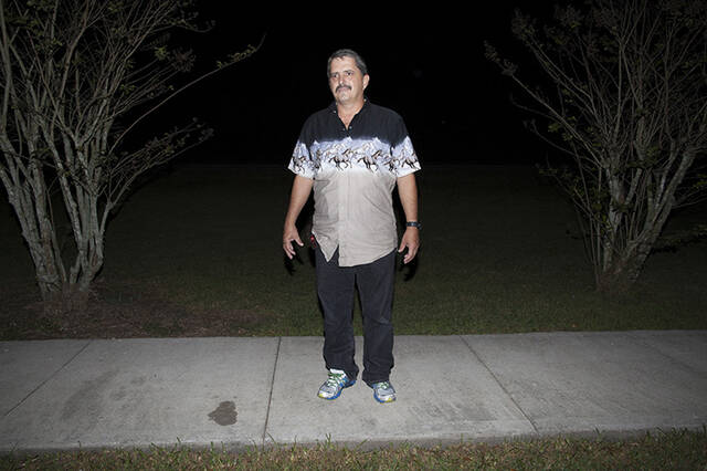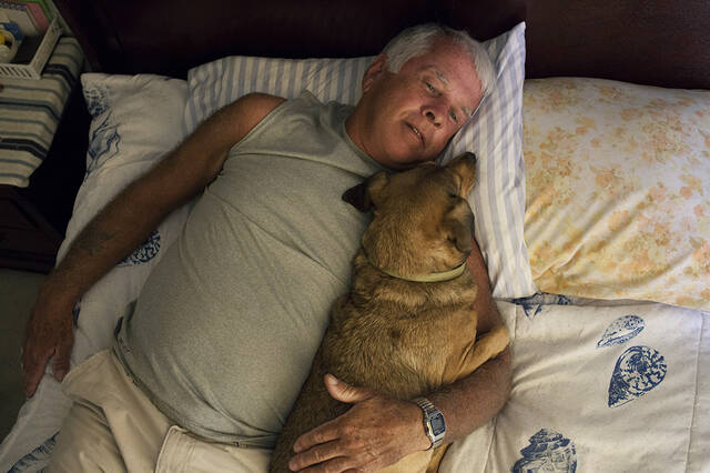 这个社区地理上与世隔绝,缓刑 的性犯罪者不允许靠近有儿童聚集的建筑物周围300米内。他们中的许多人把这里当作避风港。不过这个村子让我们不得不考虑一个严峻的问题,我们到底应不应 该原谅这些最为人们所憎恨的犯罪者?图中Gene和他的狗相依为伴,作为一名性犯罪者,他几乎很难再去获得他人的信任。