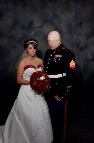 |  婚禮現場 10日晚,江甦揚州靖泰大酒店,一對新人的婚禮受到格外關注。從南京農業大學畢業的鮑宏艷,嫁給了一個因執行任務被嚴重燒傷的士官。新郎葛新峰燒傷之後,被稱為英雄。光環之下,年輕夫妻保持著難得的冷靜與清醒。 火中奮戰 他被毀了容顏 1998年冬天,正讀高三的葛新峰應征入伍,高大帥氣的他在新兵連中表現突出。2002年1月4日,一場大火在漳州圓山密林中燃起。山頂上有部隊的雷達,有油庫。一旦被大火引爆,後果不堪設想。那天正是士官葛新峰值班,他被派入火場撲救。包括葛新峰在內的20名突擊隊員與烈火頑強對抗,至次日凌晨,山火被徹底撲滅。雷達裝備保住了,油庫保住了,葛新峰卻受傷了。自救期間,堅持了5個多小時的他一腳沒踩穩,跌落進山坳間的火海,全身76%被嚴重燒傷。數十次的搶救治療讓他保住了生命,也留下一張傷疤累累的臉,一個再不能抬高的右臂,與十指皆被截去末段的雙手。他被鑒定為二級傷殘,部隊給他記了一等功。 她初見他 好奇成分更多 此後每年探親回家,葛新峰足不出戶。母親四處托人給兒子介紹對象。五年來,十里八鄉的姑娘都說遍了,就連揚州市總工會也來當紅娘,但這一切都擋不住葛新峰邁入大齡青年的行列。到後來,葛新峰再去與姑娘見面,已經不再痛苦,不再難堪,也不抱任何希望。最終,60多個姑娘被嚇走。相親于他,漸漸成為一種應付與敷衍。 母親求親告友之後,又托人找到揚州電視台。去年3月28日晚,一檔專為傷殘英雄征婚而錄制的節目在揚州電視台播出。鏡頭上的葛新峰被作了美化處理。節目播出3天後,葛新峰收到一條短信︰“你好。”發信息的正是鮑宏艷。“看到電視時,感覺這個人很不容易,好歹也算老鄉,就記下號碼了。哪天聯系一下表達表達欽佩之情,對他也是一種安慰呢!”鮑宏艷說,她最初聯系葛新峰目的很簡單,甚至有一絲好奇,“我4月3日要到揚州出差,沒事時也許可以見見他,看到底是什麼樣一個人。” 他的坦蕩 讓她非常欽佩 到那天真正見面時,鮑宏艷發現葛新峰的容貌比她所能想象的還要難以面對。“我不敢多看,那次見面,我們只待了短短10分鐘。”葛新峰說,“我告訴她我不僅臉燒成這樣,而且全身上下都是這樣的疤。我家里還很窮,父母是農村人,妹妹在讀書,我的收入也不高,將來會怎樣,也還很難說。”或許如此,當姑娘再度離去時,他可以自我安慰,“不是我的相貌嚇走了女孩,而是我自身的條件不好。” 他這份“破罐子破摔”的坦蕩,卻讓鮑宏艷很欽佩。3天後再次出差到揚州,她又打通他的電話。兩人不知不覺聊到中午,葛新峰請她吃了碗3塊5的擔擔面。這一碗面讓鮑宏艷看到了葛新峰的樸實。兩周後葛新峰回部隊,他們的聯系卻開始多了。“她是唯一和我見過兩面的姑娘。我那時真心喜歡她,但不敢想得太多。” 好不容易 愛情修成正果 “大街上一起走,別人要麼看他一眼就跑了,要麼死盯著看。有時我會生氣,他就讓我體諒人家。其實我知道他心里非常難受,但還這樣講,我非常心酸。”生活中的點點滴滴,讓鮑宏艷克服了最初的恐懼,而漸漸對葛新峰生出愛意。半年後,鮑宏艷將兩人的戀情告知父母。父母堅決反對。到後來,葛新峰說︰“你家人不同意,那就算了吧!”這讓鮑宏艷越發不舍。 今年4月,鮑宏艷的父親給女兒寄來一封信︰“他父母是農村戶口,將來沒有退休金,嫁給他就必須負擔起贍養老人的義務;他妹妹還在讀書,嫁給他就必須幫助他撫養妹妹成才;他一身是傷,沒有勞動力,嫁給他就要照顧他一輩子……這些事你都想清楚了嗎?”鮑宏艷捧著信落下淚來。今年6月13日,在雙方家長默許下,兩人終于領了結婚證。 |