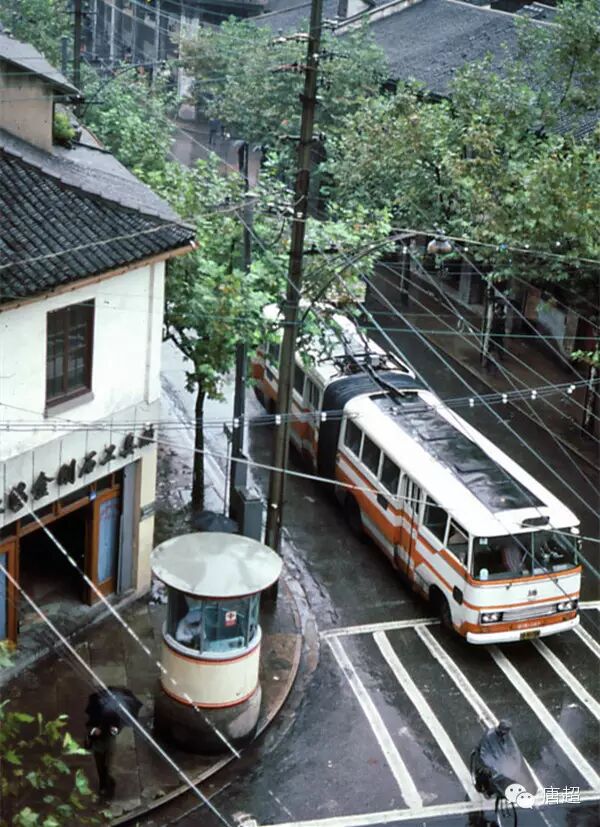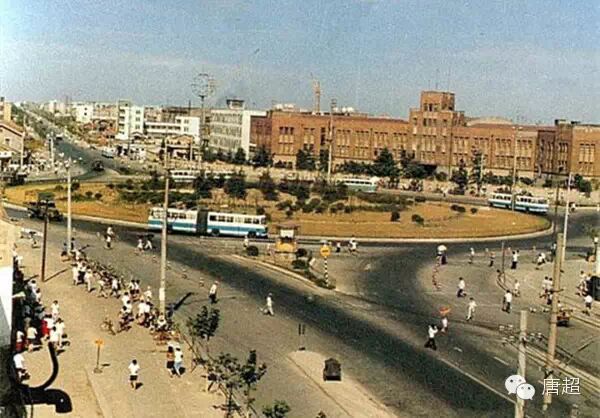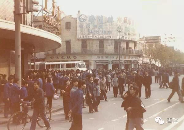 上海博物馆下望金陵东路河南南路口,警察岗亭旁是金刚石工具厂门市部,往东向还有金陵点心店。