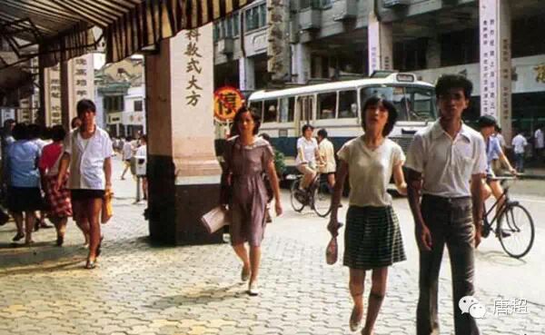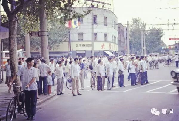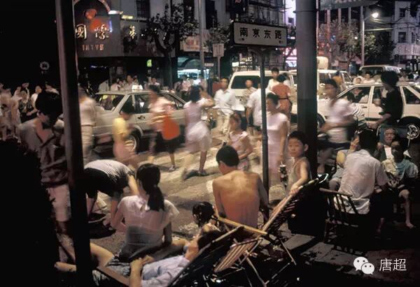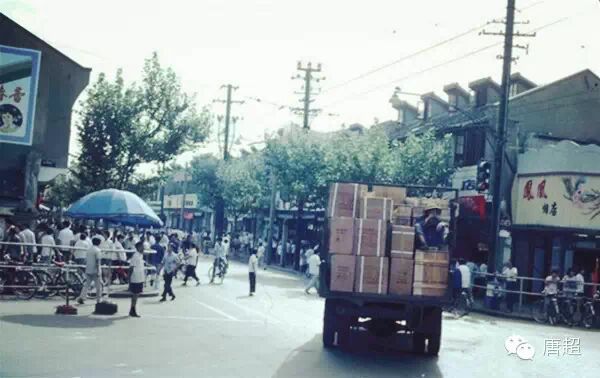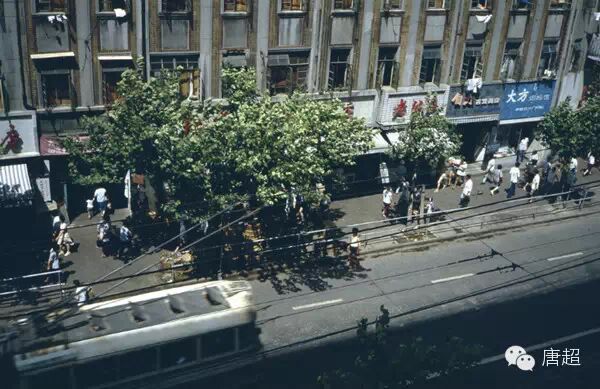南京东路福建路口乘风凉,右侧小马路是石潭街。对面国际电视机商店,往东向是上海家具商店。