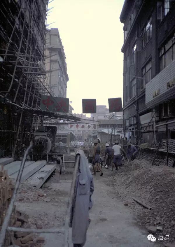 中央商场(沙市一路),施工工地。右侧是东海饭店,前方可见沙市饮食店