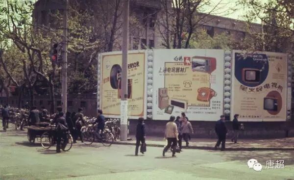 淮海中路汾阳路口,广告牌后为上海沪光中学。
