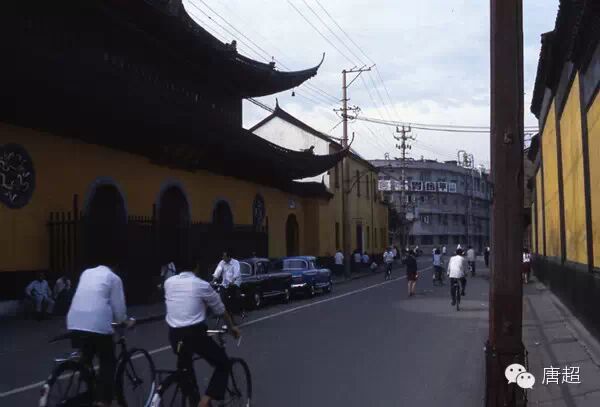 华山路近南京西路(静安寺)南望,前方转角处是大发南货店分店,往东向是静安皮鞋店。楼房后面就是静安公园。