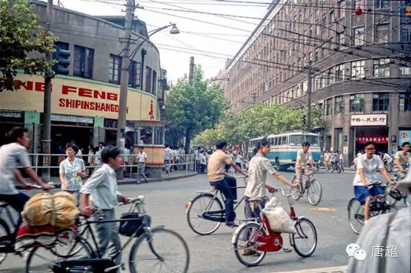 四川北路海宁路,左侧:长风食品商店,右侧:中国人民银行,银行南向对马路是凯福饭店。