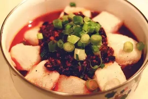 4.锅放植物油50克,烧至五成热时,下花椒、红辣椒段、蒜蓉、葱白段炸香,浇在鱼片上即成。