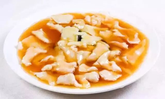 2.勺内放入开水500克,将鱼片下入勺内烫至断生捞出。