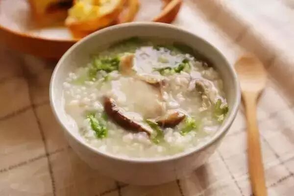 原料:大米150克,鱼肉100克,鲜香菇4朵,芹菜50克,姜丝2克,盐,胡椒粉适量。