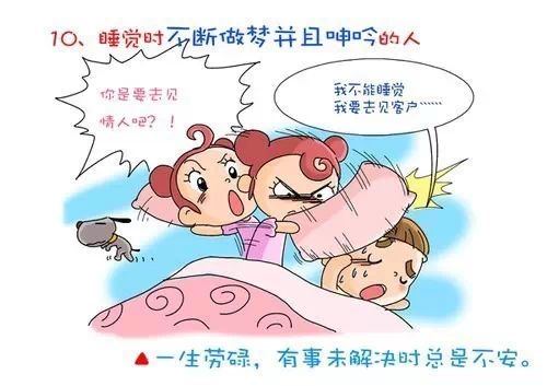 10.睡觉时不断做梦并且呻吟的人:一生劳碌,有事未解决时总是不安。