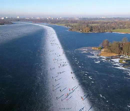 7.荷兰格罗宁根南部帕特斯沃尔德湖上的滑冰爱好者