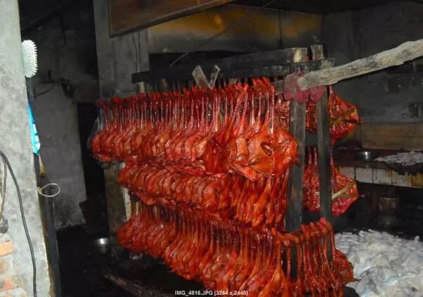 挂起来晾一下,即将出发进超市和饭店的成品。建议大家少在外面吃不干净的东西,尽量多在家里吃饭,也好陪一陪家人孩子!这才是幸福的一家,对吧!