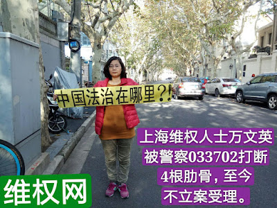 上海维权人士万文英喊一声“冤枉”被殴致4根肋骨骨折