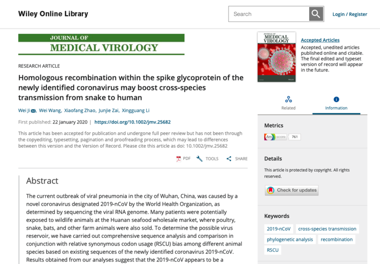 台灣提升防疫等級 禁止武漢人士入台/中國學者最新研究:新型冠狀病毒的直接來源最可能是...