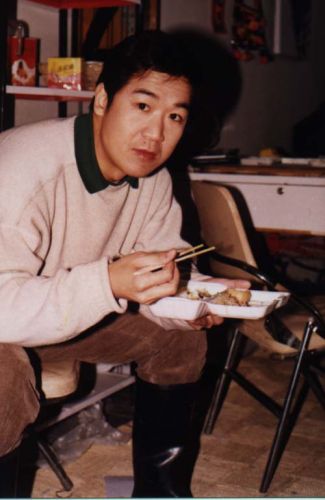 有一年在青島,斗琪導演的《愛的彎道》里,張國立與尤勇、左翎等主演。我們在賓館進行一次較深的長談。回憶起當年在貴州凱里做工的日子時,他激動地說︰“當我推著盛滿礦石的小車鑽出山洞,望著眼前碧綠、重疊的山巒時,我真想對著遠方呼喊‘我要離開這里!’那時,我就想當一個演員。”  (1995年,在《混在北京》劇組里,他正吃盒飯。)