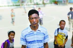 潘德禄33岁,在贵州岩脚小学代课7年。他敲击角铁宣布上课,学校没有电铃。在这个贫困的寨子中,潘德禄老师家算是很穷的,他16岁的女儿,去了浙江打工,目前是家中的经济支柱。