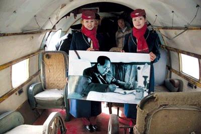 |    毛澤東座機經歷了幾十年的風雨,終于找到了它的歸宿--中國民航博物館。南航公司在河南新鄭國際機場舉行了毛澤東座機進京啟程儀式。 這架伊爾-14運輸機,是1956年斯大林送給毛澤東的專機,當時在中央專機團服役。客艙內設置了17個座椅、1張矮床、1張沙發和1個辦公桌,客艙前隔板右側懸掛著毛澤東主席在這架飛機上的1張照片。 1985年,這架專機被調到原中原航空公司服役,1992年停飛,1994年被運到少林寺展覽。2000年,南航與原中原航聯合重組後,這架飛機被運回南航河南分公司。 經過幾十年的風吹日曬,飛機部分已經損壞。因此,2001年南航河南分公司在不改變飛機原有結構和標志的前提下,對這架飛機重新組裝、修繕,並作為文物保存起來。 參加儀式的南航的負責人介紹說,這架毛澤東座機凝聚著民航人對毛澤東深厚的感情,能被中國民航博物館收藏是它最好的歸宿。 伊爾-14是甦聯研制的雙發中短程活塞式客機。中國從1955年起,陸續購買了49架,用于國內支線客運和專機使用。(來源︰中華網)