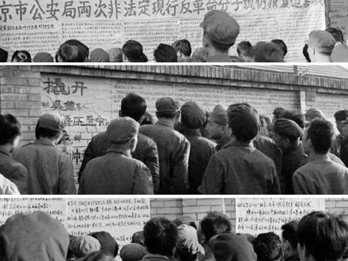 广场张贴“大字报”毕竟多有不便,于是越来越多的“大字报”贴向北京闹市区西单路口一排约200米长的灰色矮墙,观者如堵,逐渐形成所谓“民主墙”。“大字报”的内容,包括公开议论毛泽东的功过,要求言论自由、民间办报、保护人权,主张“第5个现代化”(政治民主化)、呼吁警惕出现“新的独裁”等。一些外地“访民”也在这里张贴大字报、小字报,甚至在街头发表演讲,申诉自己的冤情。一些未经登记注册的民间组织,未经官方出版许可的民间刊物,未经组织核准的民间讨论会,也活跃起来。