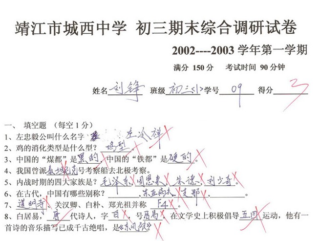 | 去年因編《國學基本教材》,接觸了一些台灣中學的國文考題,覺得有些題目出得很有意思。年末,怡逢兩位北京某所大學中文系的博士生來公司玩,閑得無事,突然想起電腦中的台灣國文考題,便隨機挑了10題,打印出來,讓兩位博士生做著玩。 兩位倒是認真,做了有10多分鐘,才交的卷。拿過答案一對,兩人正確的竟然都未過半,著實讓我吃驚。晚上在公司邊的酒館為二人壓驚,說等《國學基本教材》出了,一定送二位一套。兩人走後,再沒與我聯絡。今天突然想起此事,從電腦中調出當日考題,貼在博客,不信的人盡可一試。答案也貼在後面,自己檢查,說不定你做的比兩位博士生好。祝玩得愉快!