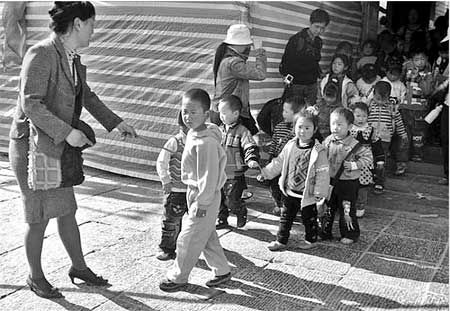| 3月26日,在洛陽市一公園內,一家幼兒園的老師用繩子拴著孩子逛公園。該事件引起了當地市民的熱議,有人支持,有人反對。 【事發】老師拴著孩子逛公園 3月26日下午4時許,洛陽市王城公園內,自由攝影師石子強在此拍攝牡丹花,突然,他看到了吃驚的一幕︰一位身著灰色裙子的幼兒園老師,竟然用一根拇指粗的紅繩子拉著一群孩子走,每個孩子都有一只手被紅繩子拴著,繩子被拉得繃直,孩子們不時地左顧右盼。“我當時心里猛地一緊,立即將這個情景拍了下來。”昨天上午,石子強說,當時,他連續拍攝十余張後,幼兒園老師很快就離開了,而帶隊的幾位老師沒有向他透露幼兒園的名字。  【看法】孩子該不該拴褒貶不一 昨天,“幼兒園老師拴著孩子逛公園”的照片經當地一家媒體報道後,引起了市民們的熱議,甚至連《成都商報》的記者也聯系石子強表示關注。“可能是為了孩子的安全吧,公園里人多繁雜,不安全因素很多。”洛陽市張先生說,他覺得這些老師是很負責的,沒有孩子的人可能無法體會到帶孩子的辛苦。 在記者的隨機采訪中,也有不少市民認為,老師這樣的做法嚴重傷害了孩子的自尊,踐踏了孩子的人格。孩子也是人,不能像拴動物一樣拴著孩子,即使孩子們到了公園也享受不到大自然的樂趣,這根繩子不但拴住了孩子們渴望了解新事物的好奇心,而且還會影響孩子們正常的身心發展。 但多數孩子正上幼兒園的家長則認為,孩子的安全大于一切,只要老師不把孩子勒得太緊,不傷著孩子,這樣的做法可以理解,只是希望以後在方式上再人性化一些。 市民王先生則建議,教師應該多教育感染孩子,或者讓孩子們手拉著手像排火車一樣,也可以在出游時讓家長隨同,這樣不但解決了安全問題,也可以讓家長與孩子一起體驗集體活動的歡樂。 【反響】幼兒園有苦難言 雖然,這一報道在當地媒體引起了廣泛關注,但是,圖片中的幼兒園卻一直沒有表態。“他們沒有和我聯系。”石子強昨天說。 昨天下午,針對市民和家長的意見,記者走訪了洛陽市多家公辦幼兒園,但均不願就此發表看法。洛陽市某私立幼兒園負責人表示,現在的孩子多是獨生子女,作為幼兒園老師,他們基本上每天都是提心吊膽的,唯恐哪個孩子有個閃失。“這些老師已經很不錯了,最起碼他們還敢冒著風險領孩子外出游玩。”這位負責人說,如果天天把孩子放在教室里,孩子當然比較安全,但這樣做家長願意嗎?為什麼現在有些公辦幼兒園連園里的玩具都不敢讓孩子玩?這里有個更深層次的原因,就是教育部門的安全規定太多,束縛了老師們的手腳。 |
