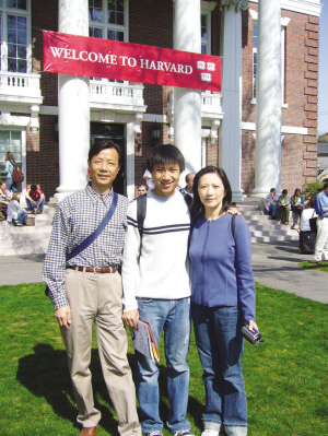 |  李可歆的全家福。  李可歆在參觀哈佛校園時的留影。 今年被13所名校爭相錄取的洛杉磯華裔男孩李可歆(Kenneth Li)雖然沒有SAT滿分,但他認為自己的成功秘訣是“條理性強和比別人先行兩步”。 據美國《僑報》報導,洛杉磯拉肯納達高中的華裔畢業生李可歆被13所著名高校錄取,其中包括所有的常春藤學校,並有全額獎學金,最終他選擇了哈佛大學。 在談到自己時,李可歆是這樣說的,“我認為我只是一個普通的美國孩子。雖然我在學校很用功,但這絕不是我生活中的唯一重心。我有著同其他同齡孩子一樣的愛好,喜歡同朋友出去玩。”李可歆認為自己的成功秘訣是“條理性強和比別人先行兩步”。 他認為不應該過于重視分數。他解釋說,“取得高分數固然重要,但並不是最重要的。我的許多同學都取得了SAT滿分,但並沒有被常春藤學校錄取。我的哈佛同學們SAT成績大多都在2150左右。” 比分數更重要的是首先要找到自己的最大愛好,然後帶著熱情和眼光來不斷追求。 對于李可歆來講,他的最大愛好就是電影和醫學。他曾經同其他同學合作制作了一部關于皮膚癌的電影短片,不但采訪了海邊的“曬黑族”,還采訪了醫學專家,對于該癌癥的預防和治療做了介紹。他說,“在我的申請作文中提到這些就會為我增色不少。” 李可歆的體育愛好也使他打破了亞裔男孩的刻板印象。李可歆是學校高中水球隊的隊員,並和其他隊員一起取得了南加州的冠軍。他說,“我的許多好朋友只是和我在一起打球,並不知道我的成績如何,也沒有像我選了那麼多的AP課程,當他們知道我被哈佛錄取時,都很驚訝。” 更可貴的是,這個陽光男孩有一顆金子般的心。當拉肯納達當地的媒體得知他的故事後要采訪他,可他卻婉言拒絕了,因為他說,“我的好多同學都沒有被名校錄取,我不想讓他們看到報紙傷心。”但他的父親認為他的經歷對于華裔學生會有所幫助時,他就欣然接受了本報的采訪,並希望對華裔社區的父母和孩子有所幫助。 父母言傳身教李可歆健康成長 從16年前在洛杉磯國際機場蹣跚步入美國的小男孩到今天的“哈佛大男孩”,李可歆的父母百感交集。他們認為孩子健康、快樂比什麼都重要,華裔家長切不可將國內的教育方式和思維照搬美國。 李可歆的父母認為除了孩子自身條件好,父母多年來也付出了許多。他們從來沒有考慮過一定將孩子送入名校,孩子健康、快樂比什麼都重要。他們教育孩子的原則就是讓他學習和工作要“努力、有效、按照美國習慣”(Work hard, work smart, work in the US systmen)。 首先,在孩子較小的時候,就要培養孩子的好習慣,包括好閱讀習慣和條理性。由于他們夫妻都是知識份子,家里的學習氣氛很濃,孩子模仿父母,自然也就會讀書。另外,要充分利用公共圖書館,負責兒童刊物的圖書員都知道每個年齡段的閱讀要求,並會推薦一些優秀書目。 其次,不能只重視分數,要重視綜合素質。孩子除了學習,還要參加各種文體活動,社會公益活動等。比如,李可歆就有繪畫、鋼琴、合唱、籃球、棒球、水球等愛好。 還有,家長和孩子切不可互相攀比,因為這樣做毫無益處。他們解釋說,攀比有兩種情況︰一是將自己孩子的長處比人家孩子的短處,自己會自高自大;還有就是將自己孩子的短處比人家的長處,自己會很自卑。父母從小就教育李可歆說,“世界上有許多顏色,都是好的顏色;世界上有許多好的生活,都是好的生活。” 再有,對孩子要多鼓勵,沒做好也不要緊,但要善于總結。還要培養孩子的責任心。中華民族一些傳統的美德也不可丟棄。 對于孩子的成就,家長自然很是欣慰和驕傲。但父母認為,“進入哈佛是有了一個很高的起點,我們希望他以後更加健康、快樂。”同時他們也希望孩子今後可以不再“仰視和俯視”,而是以平常心“平視”一切。 |